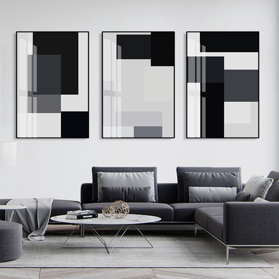 Abstract Black White Block Geometric Canvas Painting Wall Art Poster Prints Pictures For Living Room Home Decoration Interior Unframed Shopee Malaysia